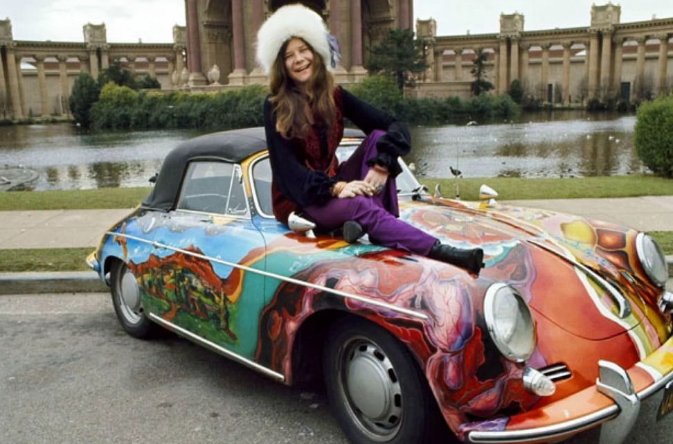 Dipinta a mano, poi rubata, recuperata e ancora scomparsa: la storia della fantastica Porche psichedelica di Janis Joplin…